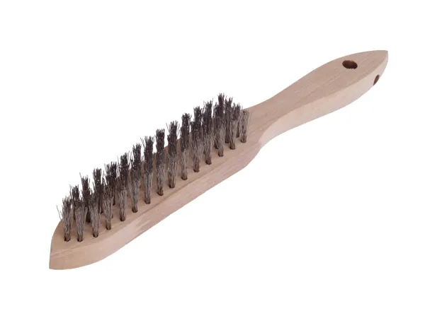 En effektiv handstålborste med 4 rader och en tråddiameter på 0,35 mm är tillverkad av mässingstråd för att rengöra olika ytor utan att skada dem.