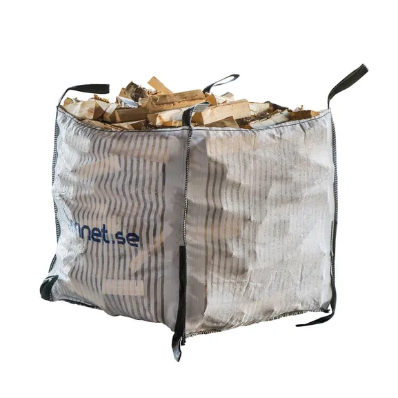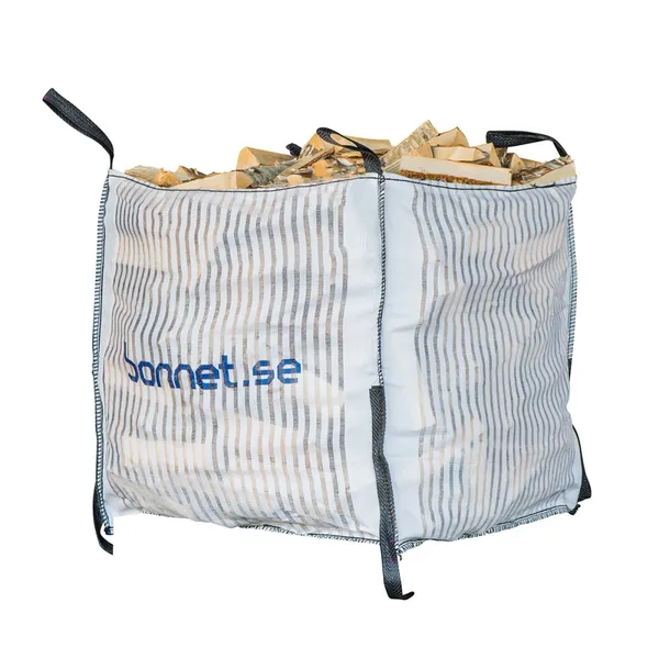 Big Bag vedsäck i plast med fast botten är ett robust och högkvalitativt val för dig som vill hantera, lagra eller transportera ved på ett smidigt och effektivt sätt. Säckens konstruktion rymmer 1000 liter och är tillverkad i UV-beständigt material som klarar långvarig exponering utomhus. De fyra lyftöglorna i överkanten gör säcken enkel att flytta med pallgafflar, och den kan användas flera gånger tack vare sin solida kvalitet.